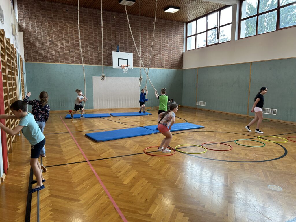 Stationenbetrieb im Turnsaal mit Bernadette Wurz