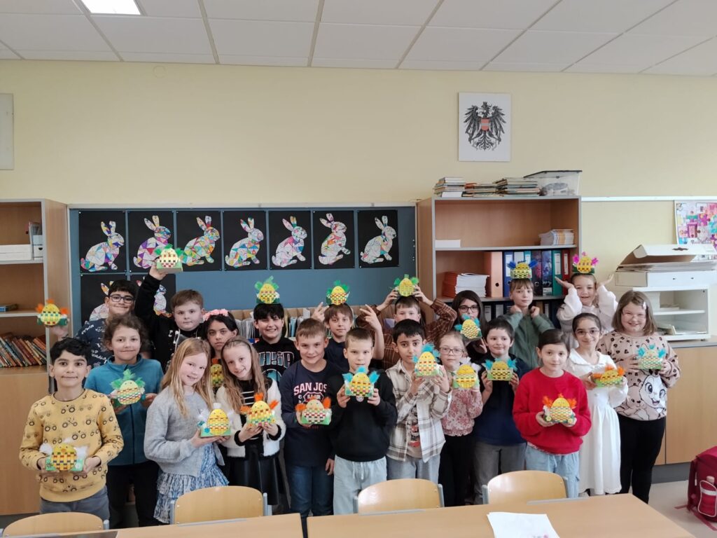 Am letzten Schultag vor den Osterferien feiert die ganze Schule gemeinsam in der Aula. Zu Beginn singen und musizieren wir gemeinsam. Danach weiht der Herr Pfarrer Mag. Radoslaw Pleskot unsere selbst hergestellten Palmbuschen. Ein Highlight ist der alljährliche Eierpeck-Wettbewerb. Im Vorfeld wird in jeder Klasse und aus dem Team eine Gewinnerin oder ein Gewinner gekürt. Beim Schul-Wettbewerb pecken dann die Siegerinnen und Sieger der Klassen und des Teams nochmals gegeneinander. Der Gewinner des heurigen Eierpeck-Wettbewerbs ist Felix Köhler aus der 4. Klasse. Herzlichen Glückwunsch! Als Abschluss des Osterfestes singt die Deutschförderklasse noch ein Frühlingslied.