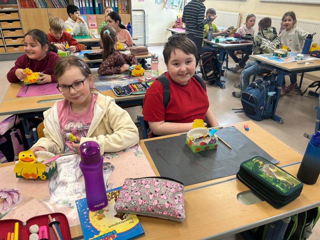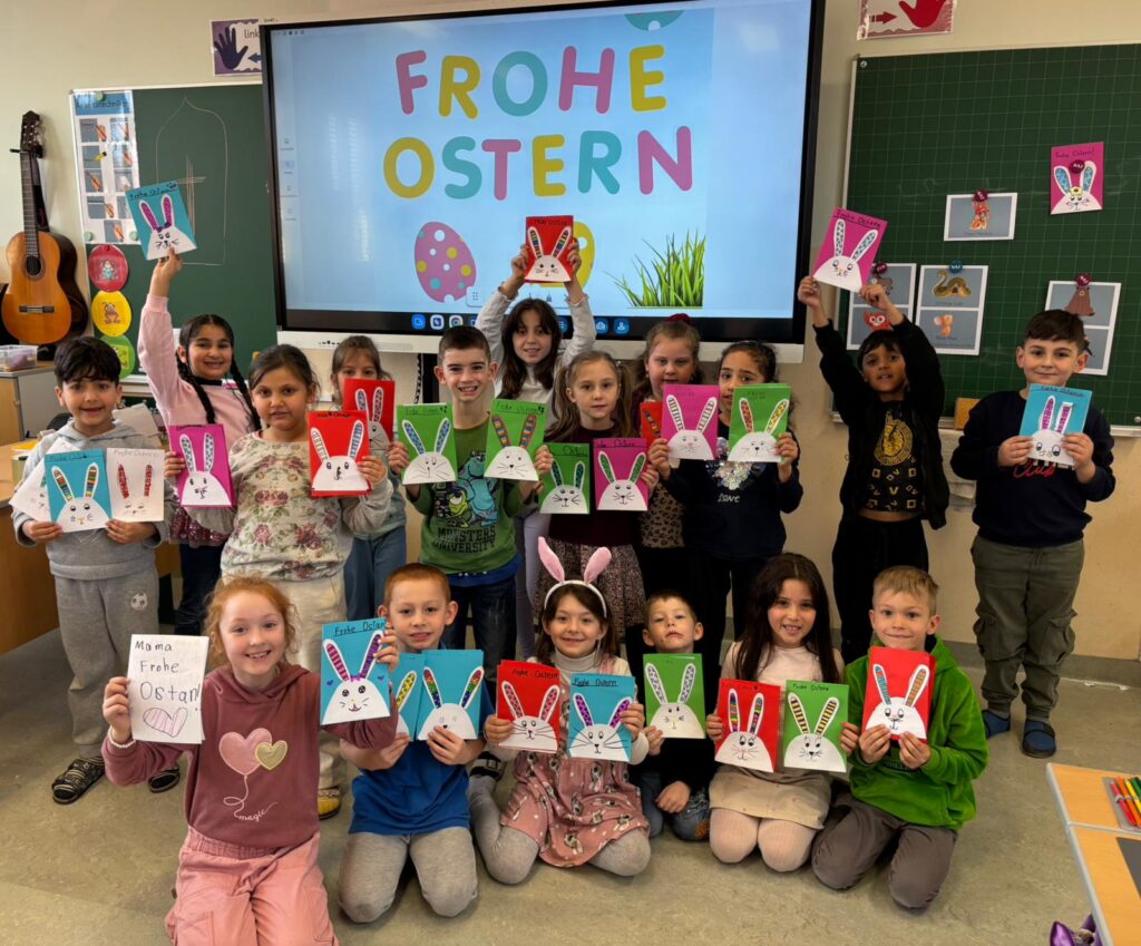 Die 1b hat fleißig Osterkarten gebastelt – der Osterhase kann kommen!