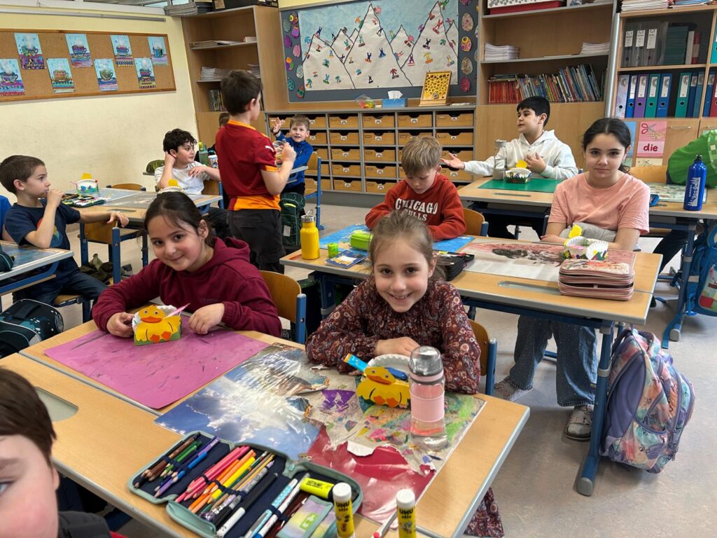 In einer Doppelstunde „Kunst und Gestaltung“ waren die Kinder der 4a-Klasse besonders fleißig: Insgesamt 217! bunte Schmetterlinge wurden angefertigt! Mit viel Kreativität und Geschick schnitten, falteten und klebten sie – das Ergebnis kann sich sehen lassen.