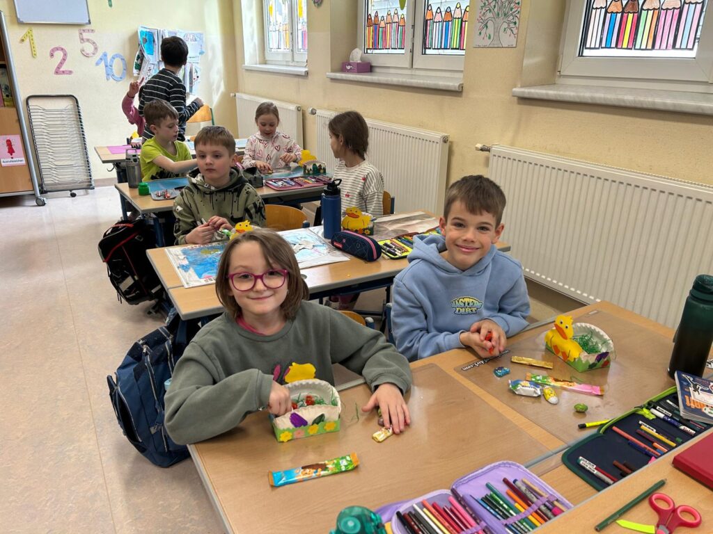 Mit viel Eifer gestalteten die Kinder Osterkarten für ihre Familien, lernten ein Gedicht und verfassten Grüße.