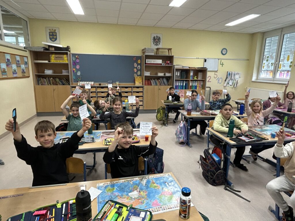 In unserer Froschklasse gibt es sehr fleißige Leserinnen und Leser. Sie lasen bereits so viele Bücher, dass sie in der Antolin App über 1000 Punkte erreichten. Als Anerkennung für diese großartige Leistung bekamen die Kinder von unserer Frau Direktorin heute einen Gutschein für eine Leseaufgabe überreicht. Herzlichen Glückwunsch! Weiter so!