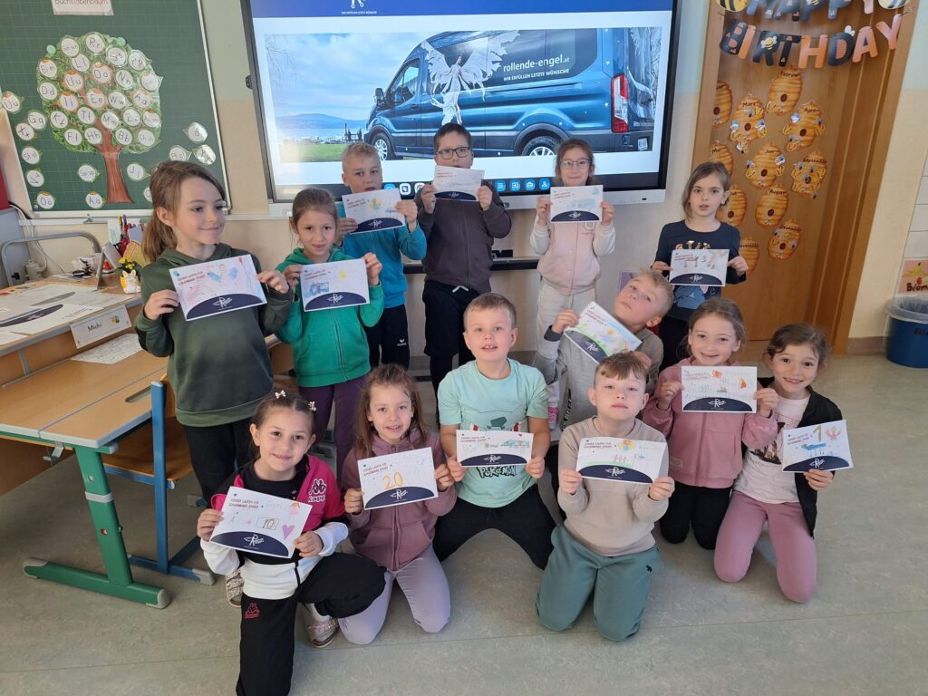 Die Klassen 1a, 2a und 3b nahmen darüber hinaus am Laufbewerb des Vereins „Rollende Engel“ teil. Dieser erfüllt schwerkranken Menschen letzte Wünsche. Auch hier hatten die Kinder große Freude dabei, mit Ihrer Teilnahme Gutes für andere Menschen zu tun. https://www.rollenge-engel.at