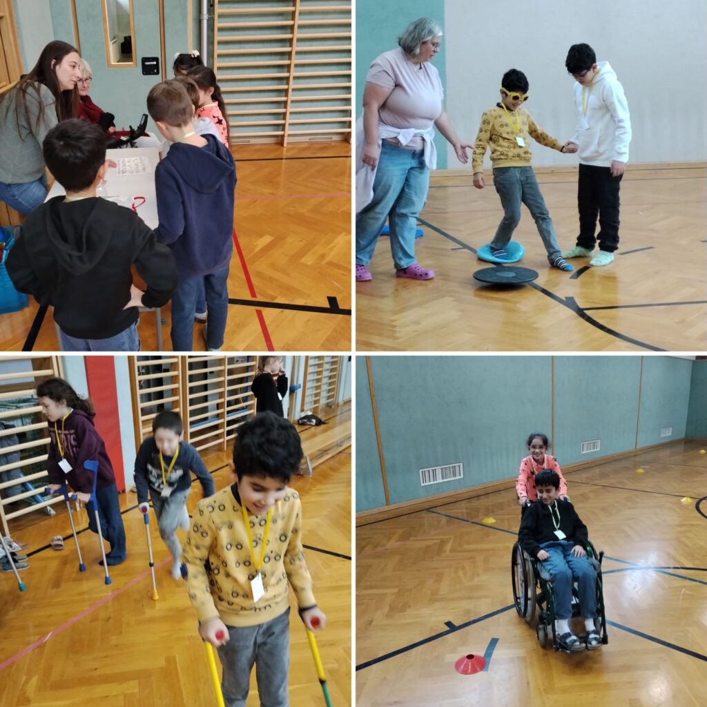 Vielen lieben Dank an die Selbsthilfegruppe ANDERS für das Organisieren dieses Workshops! Wir konnten ausprobieren, wie es sich anfühlt, in einem Rollstuhl zu sitzen, mit Krücken zu gehen, unseren Namen mit dem Gehörlosenalphabet zu schreiben und blind einen Parcours zu bewältigen. Das war eine interessante Erfahrung!