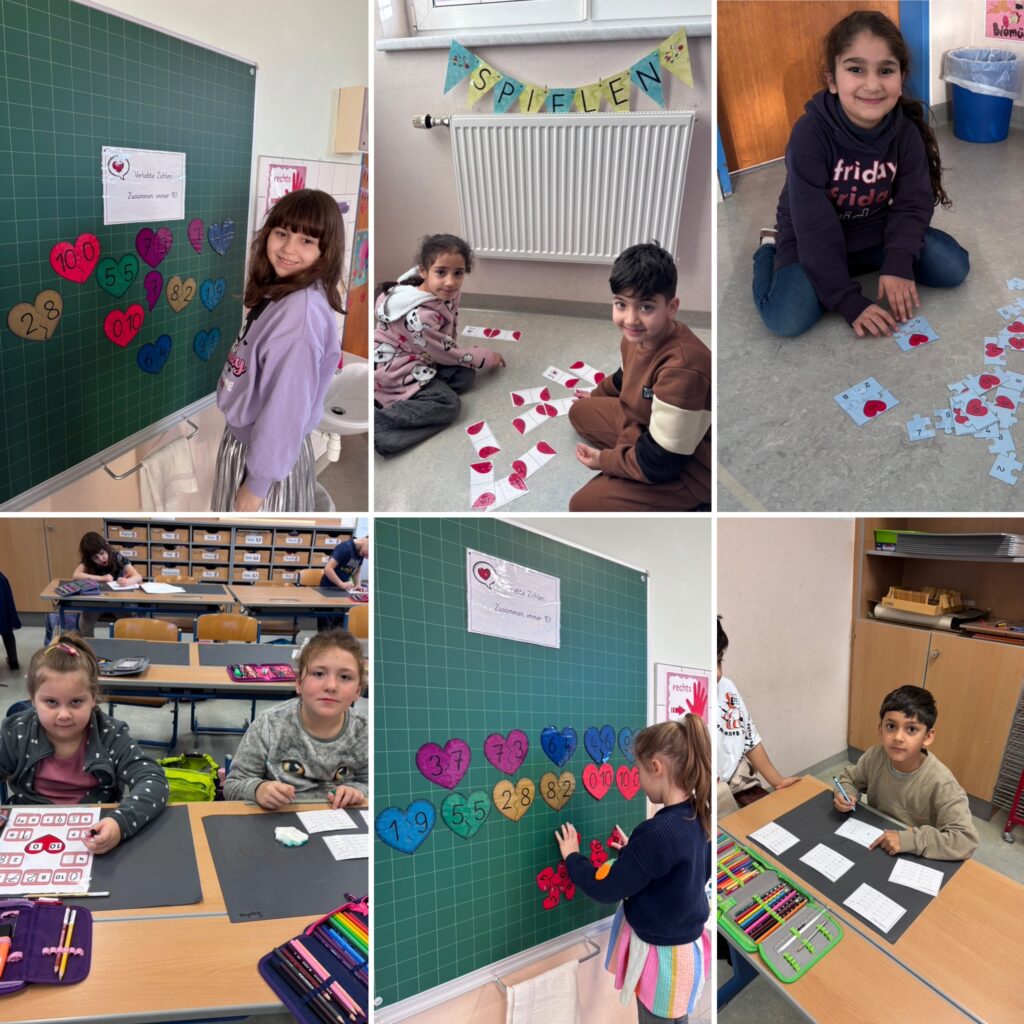Mit viel Spaß und Freude üben die Kinder an vielen verschiedenen Stationen die verliebten Zahlen.
