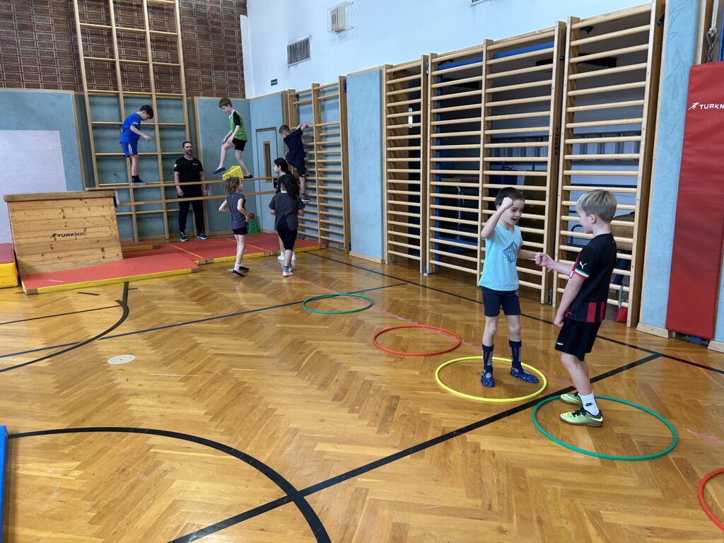 Stationenbetrieb im Turnsaal mit Bernadette Wurz