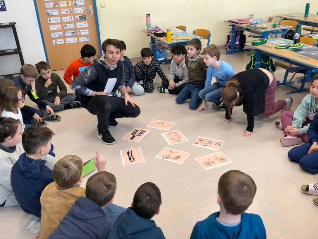 Die Kinder der Vorschulklasse sowie der 1a lasen die Geschichte des Affen Moritz und sprachen über angemessene Bildschirmzeit sowie sinnvolle Freizeitgestaltung. In einer abschließenden Gesprächsrunde erkannten die Schülerinnen und Schüler, dass es wichtig ist, auch draußen mit Freunden zu spielen und nicht stundenlang online zu sein.